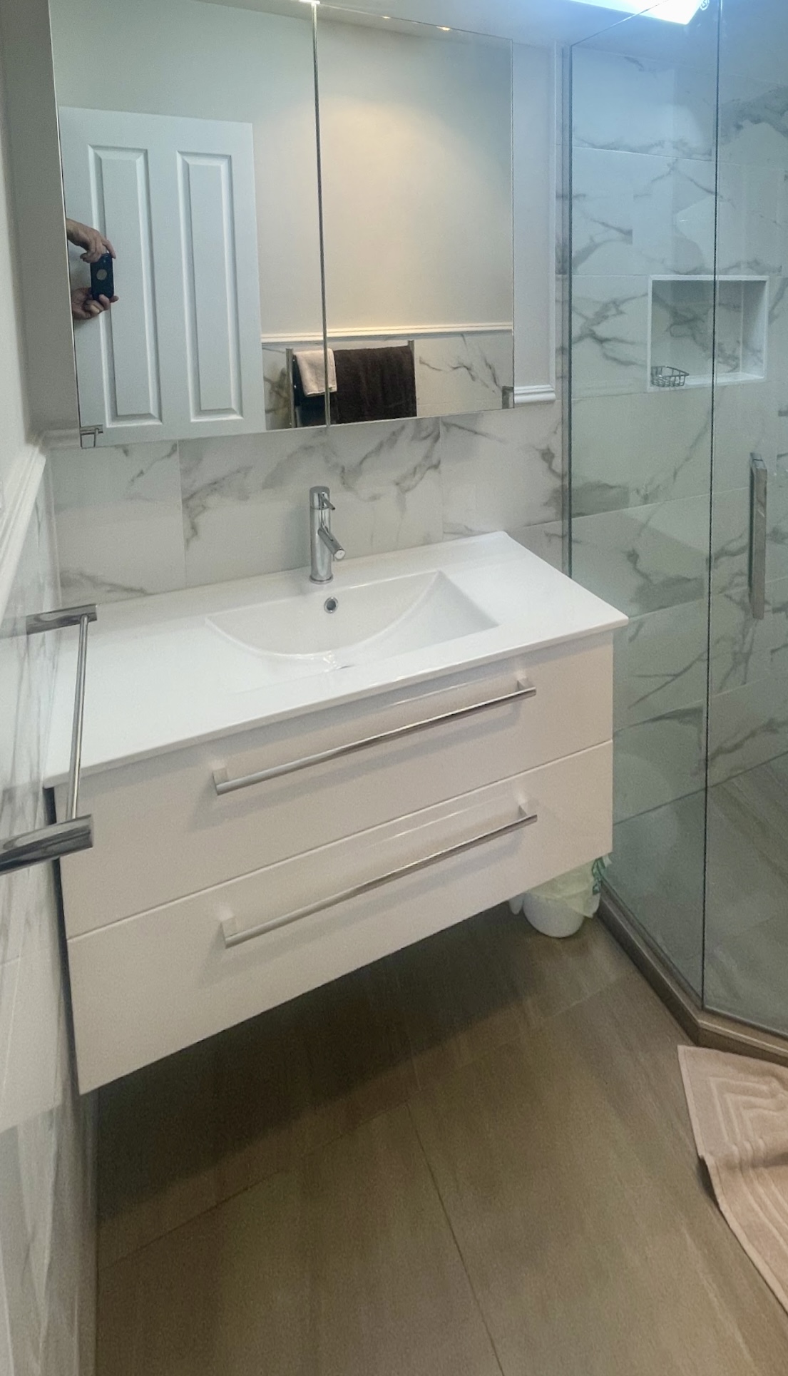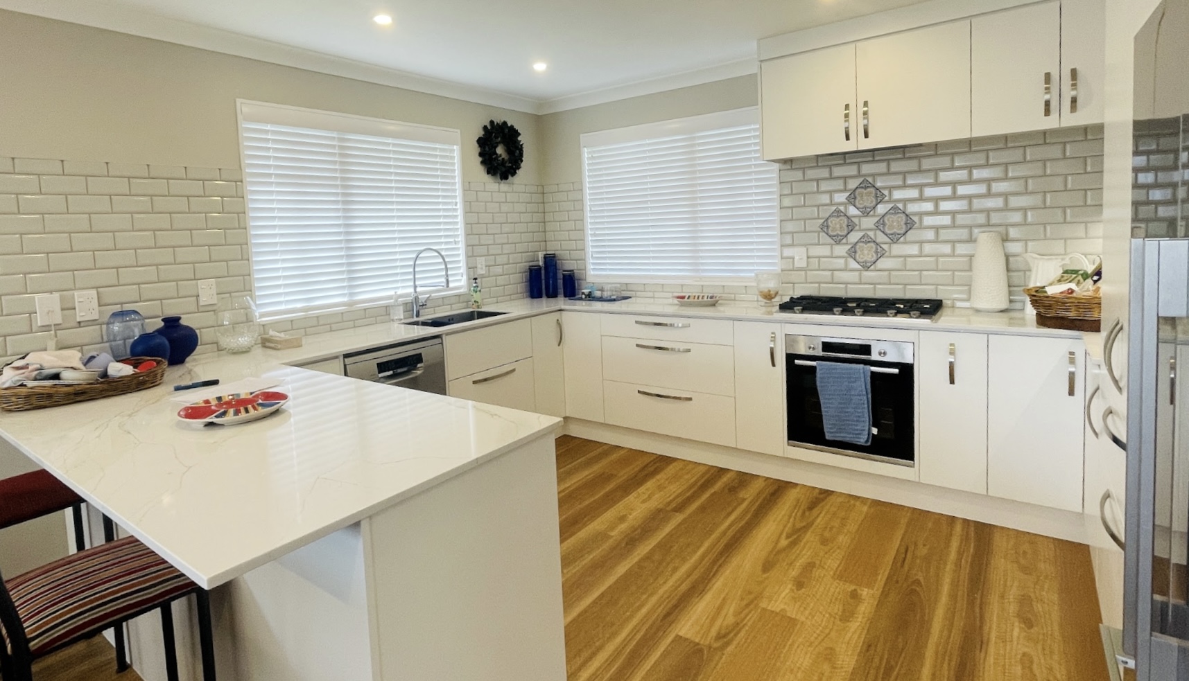 For this project I repainted the entire interior of the home, replaced the kitchen with a sleek and modern new fit out – complete with tiled splash back and feature tiles – new timber flooring throughout the kitchen, living and dining area; new carpet throughout the rest of the home and a new bathroom. The end result feels like a brand new home!