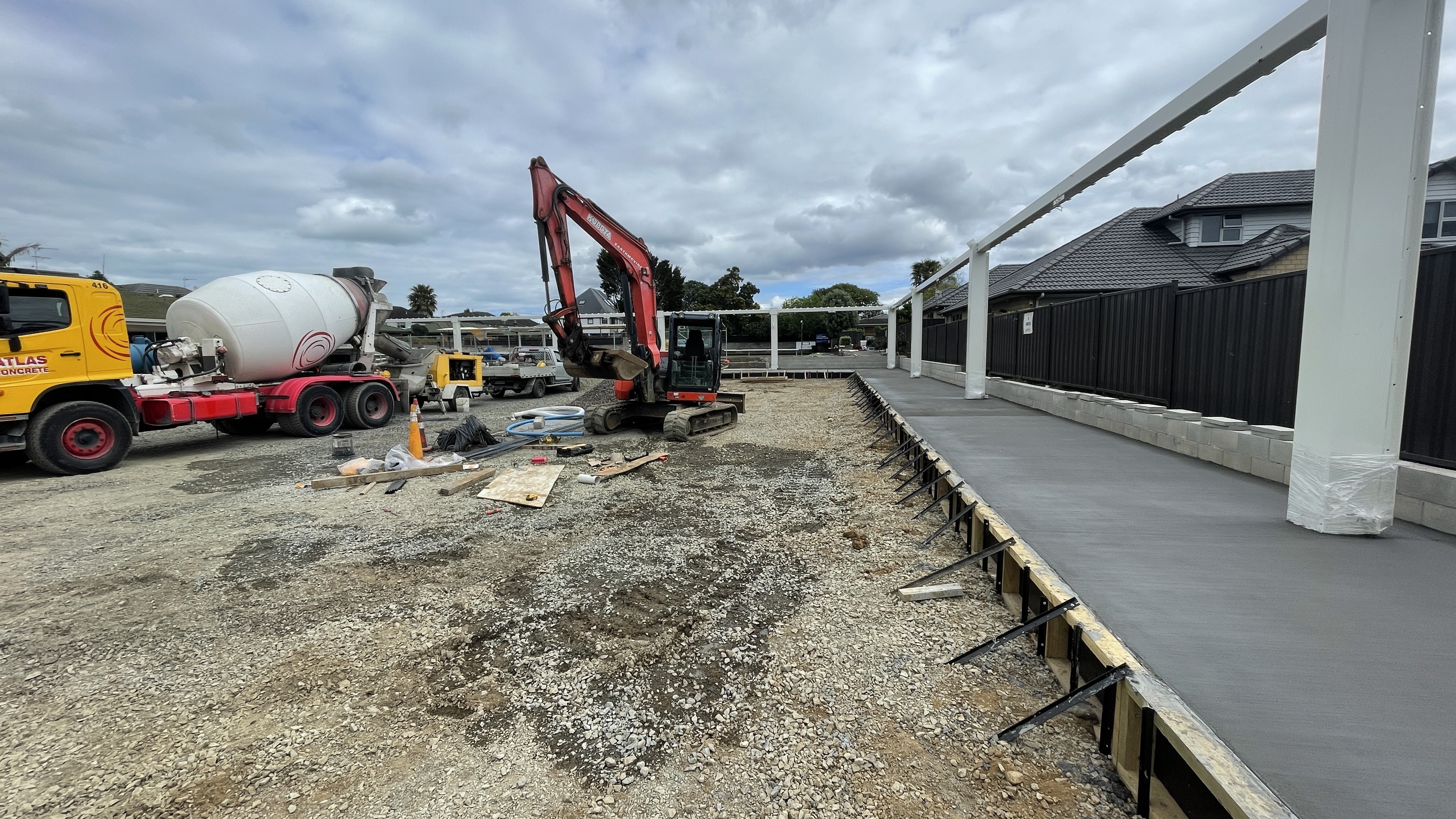 This was a large commercial contract involving a new green, new BBQ area, concrete ramps and access, drainage, seating, new steel framed doorway, re-surfacing the carpark, and more… What a project!